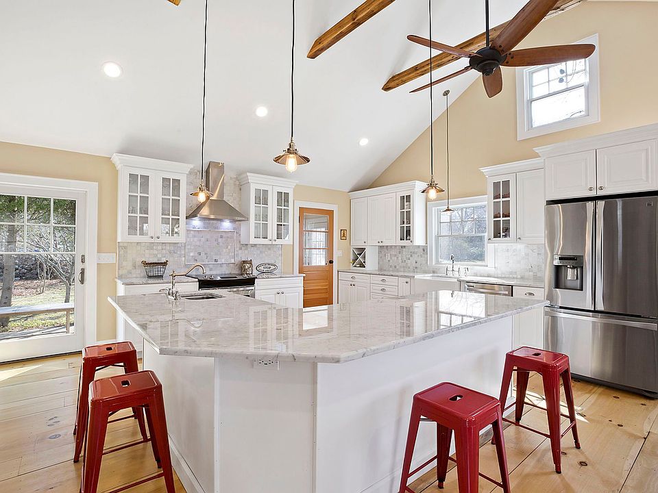 This charming cottage was recently renovated and offers incredible soaring cathedral ceilings and a large, open living/dining and entertaining space. There are two bedrooms, plus a huge sleeping loft, and a heated saltwater pool. Just around the corner from the center of Amagansett, with terrific shopping and dining, and under a mile to Indian Wells ocean beach. The house features a new kitchen with stainless appliances, new furnishings, outdoor furniture, grill, etc. The large yard is perfect for summer fun. Come and unwind by the beach this summer!