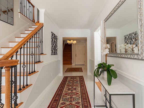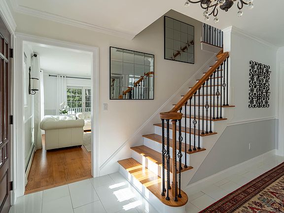 Ascend the staircase to discover the second level, where four bedrooms await, including the primary ensuite with double vanities and a luxurious soaking tub. A separate family room on this level offers a retreat for movie nights or quiet reading sessions. The lower level presents a finished bonus room, perfect for a home office or recreational space. Outside, the home is surrounded by tranquility with a front porch, side porch, and an expansive yard, all nestled on just under an acre of land. This property is a harmonious blend of classic charm and modern convenience, providing a perfect backdrop for a life well-lived in the heart of Falmouth.