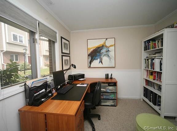 Spacious & sunny 2 bedroom, 2.5 bath tri-level townhouse in Silvermine with private entrance. Hardwood floors, wood-burning fireplace, attached 2-car garage, office/den on lower level. Both bedrooms have vaulted ceiling & private bath. Exterior of complex renovated in 2013 and roof, siding, gutters, and paint all done at that time. 2013 - new windows and skylights (except 2 windows - office window & round window). Extremely convenient location - walk to Merritt 7 train station with direct trains to NYC, minutes to Rt 7 connector & Merritt, and and lots of shopping and dining nearby.