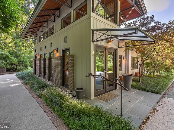Completely renovated & expanded Mid-Century Modern home with additions & improvements by Patrick Sutton. All main level rooms w/vaulted red cedar ceilings & exposed beams. Custom built-ins throughout. Stunning vaulted Entry Gallery with Travertine floor & exposed steel trusses flows to banquet-size Dining Room with custom built-ins & open flow to Family Room. Gourmet custom Kitchen with granite, stainless steel appliances & breakfast area. Living Room with fireplace & wall of windows flows through columns to cozy Library with built-in bookcases. Main level Master Bedroom with Master Bath/Dressing Room by Waterworks. Walk-out lower level Recreation Room, 2 Bedrooms, 2 Baths & Laundry Room- all with red cedar ceilings & exposed beams. Patrick Sutton designed Garage with 2nd level Guest House/Studio/Office. Heated in-ground Pool & Spa with water jets & access to Guest House. Beautiful gardens, pergolas, Patio, elevated Deck & parking pad for 8 cars. All on 2.65 private partially wooded landscaped acres.