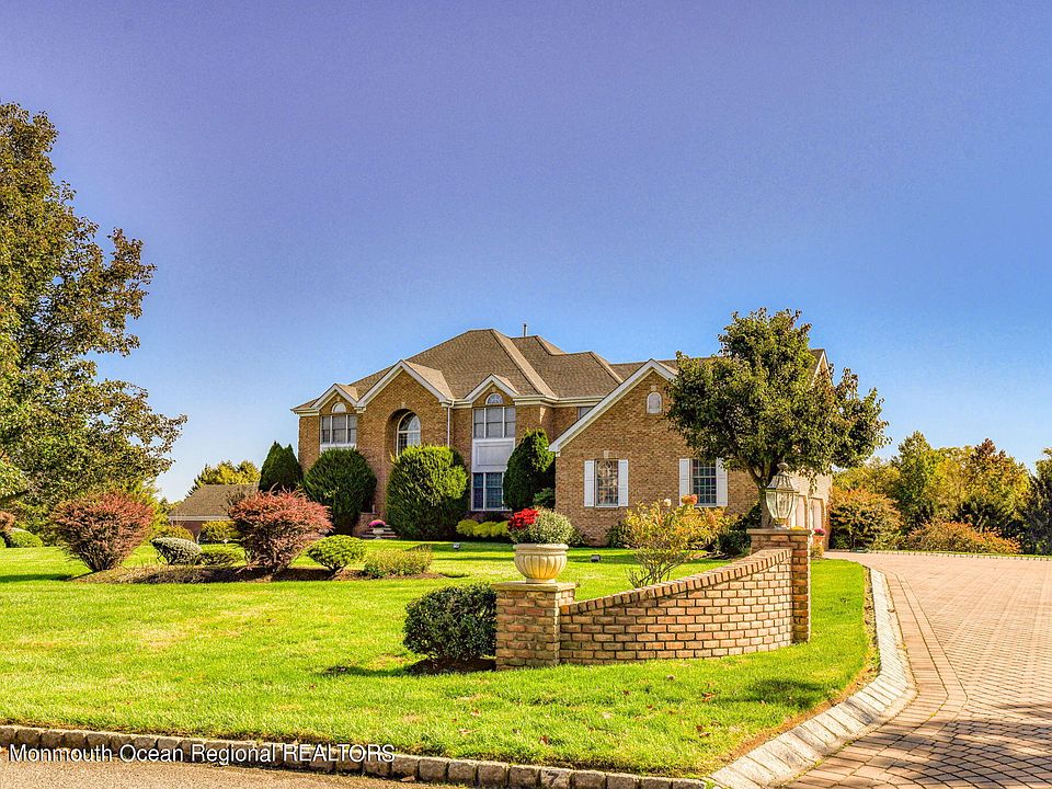 Magnificent 4800 sqft Home in the heart of Colts Neck on a beautiful cut-de-sac. LR & DR hardwood, DR has Tray ceiling, 2 story fam room with double side Fireplace, 1st floor library could be used as 6th bedroom. Open Kitchen with Lg. Breakfast nook. Home features a private guest suite w/ vaulted ceilings. M.Bed has vaulted ceiling and double Master closets. M.Bath with Jacuzzi tub sep shower his and her sinks. Additional 3 bed 1 princess suite, and 2 & 3 have a dual entry Bath . 2 zone heat and AC one is 2 years old, Basement is full with 12 ft ceilings. This is a complete smart house, lights, utilities, doors, music etc. all controlled from your phone. Home has high level security system cameras. Beautiful prof. landscaped grounds with 11 zoned sprinklers and new stone driveway