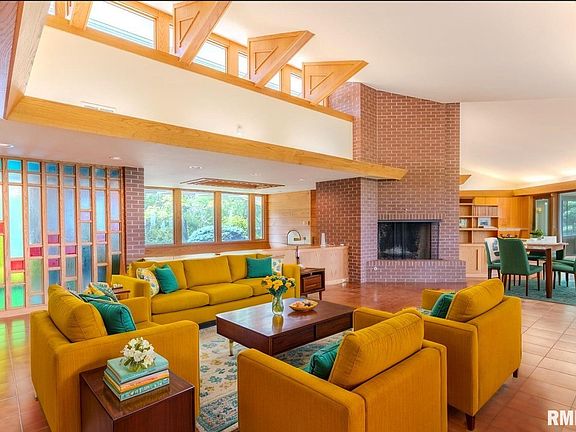 Chance of a lifetime to own a one owner Phil Feddersen (FLW apprentice) masterfully built mid-century modern usonian piece of architectural art. Located on the Mississippi exactly 2 hours and 18 minutes from Chicago. This home is for sale for the first time and instantly upon walking into the property a connection to nature is felt in a way that only a mid century home can bringing the river view and beautiful landscape views in. This is a dream home with surprisingly modern features like a whole house vacuum, screened in 3 seasons room, large floor to ceiling pella windows, large main level laundry room, oversized three car garage, a five piece master with a very large walk in closet, beautiful fireplace, a U-shaped custom kitchen with a large kitchen island, plenty of storage, Sub Zero/Kitchen-Aid appliances, and a very large and full basement with high ceilings, rebar reinforced foundation, I-beam construction, and a secure safe room along with endless storage. This home was meticulously cared for and includes almost 8000sqft of potential living space on a private lot that includes an extra separate parcel for a future build or a continued spacious yard. This is a very rare opportunity to own a very special home.