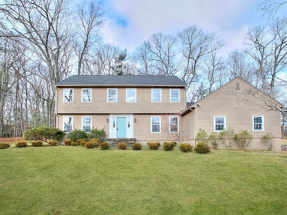 Solidly built 1970's Colonial owned by only one family. Close to town yet privately set atop a hill on a bucolic cul-de-sac. This home spans more than 2,400 sq ft, with 4 spacious bedrooms, 2.5 baths on almost an acre of verdant land with plenty of room to garden, entertain, or simply enjoy the surrounding natural beauty. The living room, dining room, family room and kitchen are affably spaced and naturally welcoming and the expansive basement is a blank canvas for your imagination. The layout is timeless and practical, offering a warm and welcoming flow throughout. Interesting highlights & updates include new roof, shiplap paneled dining room and bedroom, family room with full wall built-ins and fireplace. A little renovation imagination could restore this pretty colonial's inherent qualities. This house represents genuine possibility, whether it's a reno or a redo. Best & Final Friday Jan 10th at 5pm.