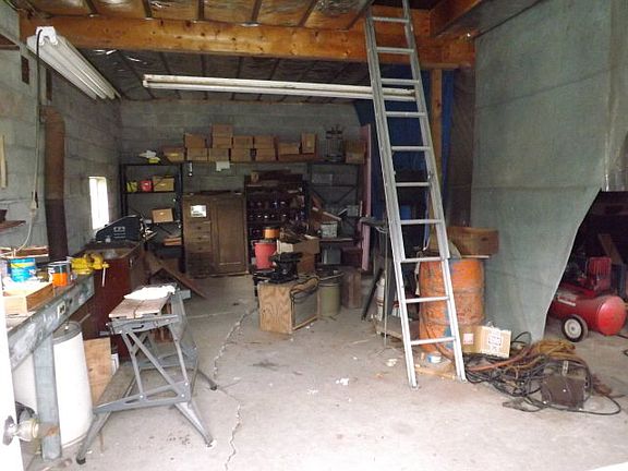 Storage Galore! This 2 bedroom, 1.5 bath raised ranch features 3 large garages with a heated workshop and a loft for extra storage. Features include a large open living space with walk-in pantry, eat-in kitchen, laundry room, plenty of closet space and a large deck to relax on. Located on Route 220 with 2 acres, it can be a convenient place to live or rent along with a perfect setup for someone looking to open a business.