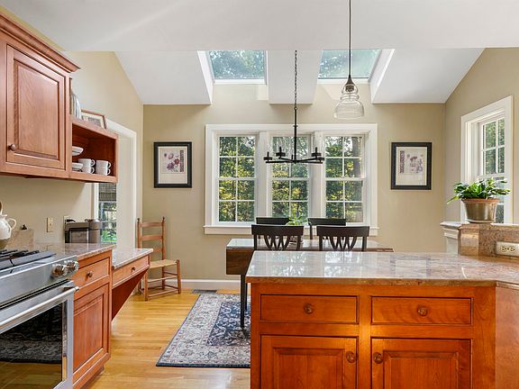 Beautifully maintained and rich with custom features, this Cape-style home by renowned builder Kevin Doherty showcases timeless craftsmanship and pride of ownership throughout. Designed and updated with care and purpose, it features extensive built-in cabinetry, energy-rated windows, and skylights that fill the interiors with natural light. The first-floor primary suite impresses with a cathedral ceiling, walk-in closet, and spa-like bath. The granite and stainless-steel kitchen offers a spacious walk-in pantry, abundant prep space, and seamless flow to a sun-filled dining area and family room with a cozy gas woodstove—perfect for both entertaining and everyday living. A formal dining room provides the ideal setting for special gatherings, while a walk-in coat/utility closet adds practical storage. A Rumford-style fireplace anchors the inviting living room, and a dedicated office with custom shelving combines elegance and function. Updated bathrooms and thoughtful details further enhance the home’s appeal. Outdoors, mature landscaping surrounds a well-sited in-ground pool and brick patio, creating a private retreat for relaxation or entertaining. Expansion opportunities include a walk-out lower level with patio access and unfinished space above the garage. Enjoy worry-free living with a Generac standby generator. Set on a quiet cul-de-sac, in one of Bedford’s most desirable locations. Showings begin Sat. 9/27 Open House  Sat. 9/27 & Sun. 9/28 11:00-1:00