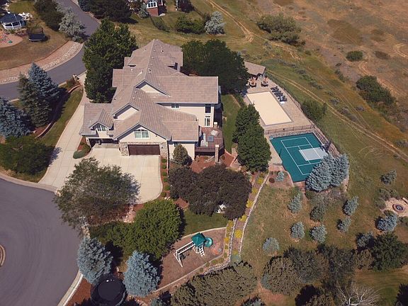 Beautiful custom home on amazing lot in Ken Caryl. Over an acre of lush landscape with amazing views of the mountains and the city. Backs to open space and features multiple decks, fire pit, two hot tubs, swimming pool, pool house with bathroom and storage and outdoor sports court. Custom home theatre, work out gym that leads to outdoor patio with fireplace. Heated covered deck and separate private deck with gas fire table. Vaulted family room with wall to wall windows and stone surround. 4 car oversized garage with custom wood doors. Amazing biking, hiking, and swimming right out your front door. Truly a one of a kind property!