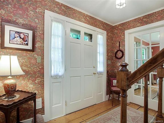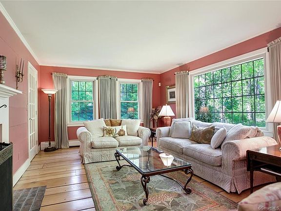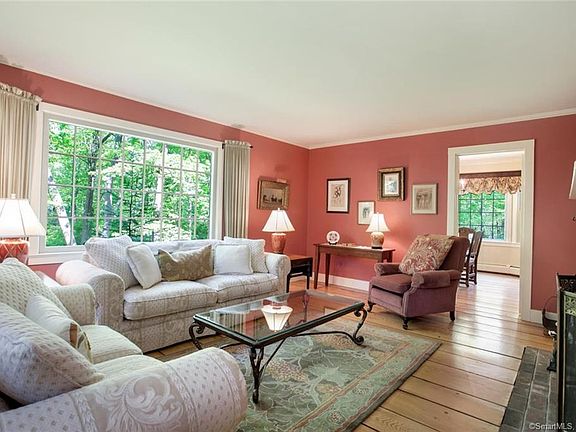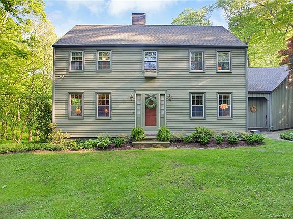 Lovely Reproduction Saltbox 4 bedrooms and 3.5 updated bathes. Large living room with antique mantel and panelled wall. Random width hardwood floors. Bright formal dining room. Large updated Sunny eat-in kitchen with breakfast nook. Den or BR on 1st floor. 4th BR or family room over garage with ensuite. Lower level Family room W/fireplace & office w/sliders to mahogany deck. This home is set on gorgeous park like property with stream & scenic pond. Everywhere you look is a stunning landscape and vignettes for tranquil meditation. Privacy yet on a cul-de-sac. Newer windows, whole house generator. 2 car attached garage.