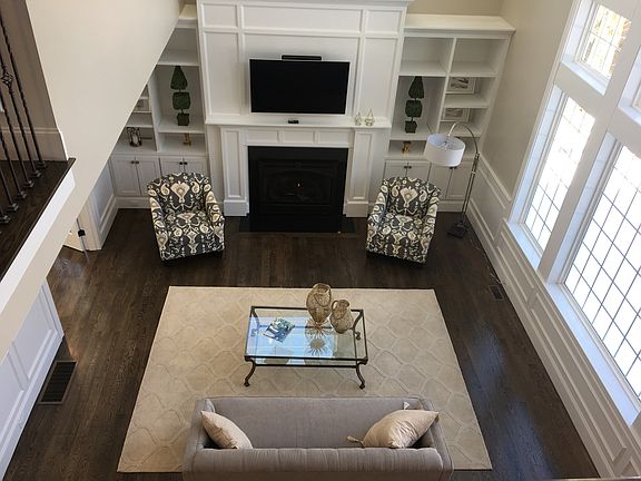 • Liv Dscrp: Fireplace, Flooring - Hardwood, Ceiling - Cathedral, Open Floor Plan, Recessed Lighting, Wainscoting, Paints & Finishes - Low Voc