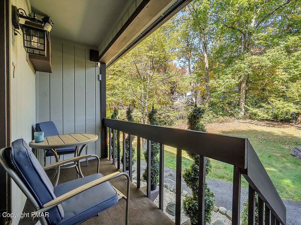 Nestled in the woods but just minutes from Camelback Resort and a short walk to the Chateau Hotel. Completely renovated townhouse with two spacious bedrooms, two full bathrooms(one with a sauna), large LR w/brick fireplace, wet bar, AC & ceiling fans for cooling, new flooring throughout, kitchen w/stainless steel appliances, two decks for your outside enjoyment, and being sold fully furnished. Turn key just bring your ski's & snowboards. Close to all major attractions in the Poconos!