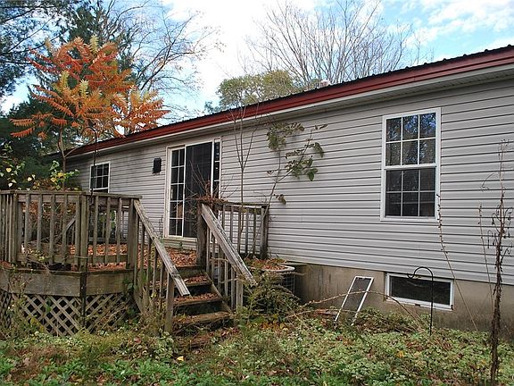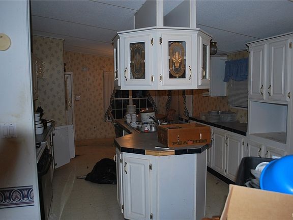 This is a 3 bedroom - 2 bath - doublewide on just over 1 acre - open floor plan with the eat in kitchen open to the dining area and living room - kitchen features a large center island with plenty of cabinets- there is a large master bedroom and bath along with 2 other good size bedrooms - the living room has a sliding glass door leading to the back deck- just off the living room is a nice size den/office and access to the 2 car garage. BONUS - fully finished office space with access from the garage! The property was beautifully landscaped and needs to be brought back to life - ceiling damage in the house was caused by a roof leak before the metal roof was installed - all being sold "as is".