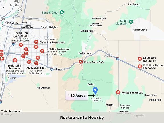Discover the perfect blend of tranquility and convenience with this stunning 1.25-acre property on Speis Rd. Nestled just 14 minutes south of Tijeras and offering breathtaking views of the majestic Manzano Mountains, this parcel is the ideal spot to build your dream home or getaway retreat. With Albuquerque only 14 minutes away, you'll enjoy easy access to urban amenities while savoring the peaceful beauty of nature. Key Features:Spectacular Views: Wake up to the awe-inspiring Manzano Mountains every day.Prime Location: Only 14 minutes to downtown Tijeras for local shops and dining. A short 14-minute drive to Albuquerque for work, entertainment and more. Expansive Lot: 1.25 acres of serene residential acreage, perfect for your vision.