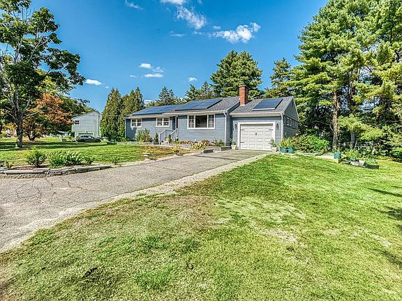 Impeccably maintained & renovated home on quiet cul-de-sac just steps away from beautiful Lake Whitehall for peaceful kayaking, fishing, & walking on 7 miles of hiking trails~Great starter home or downsize home with easy one floor living plus finished basement~Open Concept home features a FR with a stone fireplace, hardwood floors & lots of natural light~The Gorgeous kitchen has Quartz Counters, SS appliances, a Beautiful Large Waterfall Island, Upgraded white Cabinets & a Gas Stove with an outside Vented Hood~3 Beds, 1 full bath & half bath complete the 1st floor~The LL features a full bath, 2 beds & a bonus room that can be used as an office~Lots of upgrades in this home: 2023 New Roof, New Windows, New Heat Pump with New AC, Installed Leased Solar Panels~2022 Kitchen, Bathrooms, Bedrooms and Lounge Renovation~2020 New Garage Door, New Epoxy Flooring~2017 New Hot Water Tank~Septic 2010~Excellent location~Minutes to MBTA train station~Highly ranked Hopkinton Public Schools.