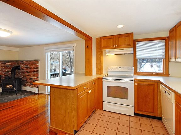 Nestled on a tranquil, dead-end street, this charming 7-room residence boasts an inviting ambiance & an abundance of natural light flooding through its sun-splashed interior. The flexible, open 1st floor living space fosters gatherings & relaxation alike, offering a seamless transition between living areas. The kitchen opens directly to the dining room, complete w wood stove & sliders that lead to a nice, 11' deck overlooking the yard. Pretty hard wood floors, a full bath & mudroom adjacent to the 1 car garage complete the picture. The 2nd floor has 3 nicely sized bedrooms, warm, wide pine floorboards, & a full bath. Outside, a cleared & fenced backyard provides a nice retreat for outdoor enjoyment for future owners as well as their 4 legged friends. A few, recent additions include a one-car attached garage, new electric panel and windows (former owner) – see list attached to MLS. This residence, w its sidewalks to shops and eateries, epitomizes the harmony of comfort and convenience.
