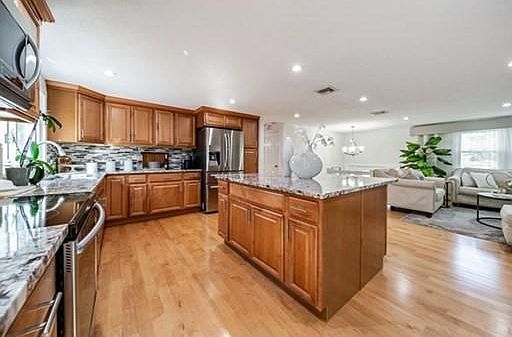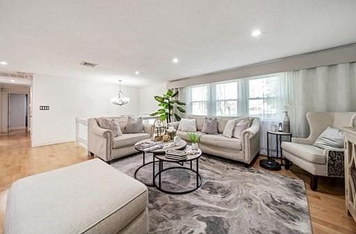JOIN THE PARTY AT THE HOTTEST HOME IN DANVERS. Experience the luxury of this contemporary home with it's large windows, open concept kitchen, living room dining room combo an array of sleek finishes thoughtful. The 2016 kitchen has an enormous center island stunning granite countertops, mosaic glass backsplash, large and abundant cabinets, and a suite of high-end stainless steel appliances from Samsung and LG. Gorgeous maple floors lead to the generous size 3 bedrooms including the Master bed/bath combo. The Lower level is a large inviting place to gather and relax in front of the gas fireplace, watch the game or movie. Recently remodeled 1/2 bath, spacious laundry and oversized garage perfectly complete the inside. NOW GET READY FOR AN AMAZING SUMMER! The inground pool and expansive patio areas create a resort setting but you will be speechless when you see the huge kitchen bar. Quartz with marble counters surround the cabinets, grill, coolers and massive chimney.