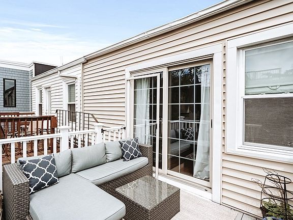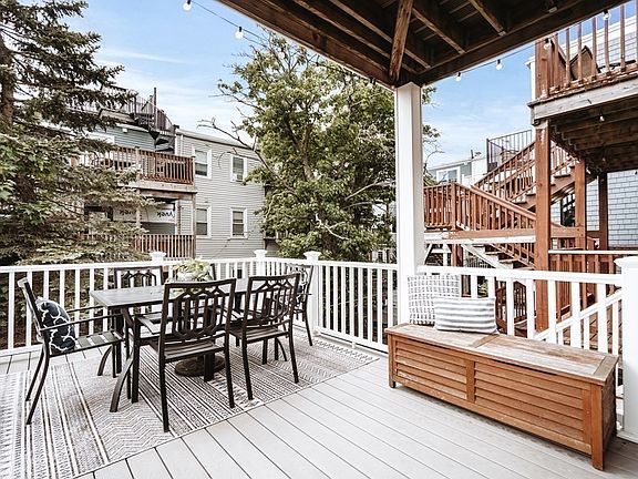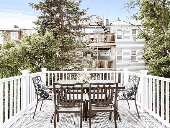 Looking for the perfect spot in South Boston on a quiet 1 way street with ample outdoor entertaining space and close proximity to both Broadway St (.3 mi to E Broadway) and beaches (.1 mi)? Then look no further! This updated 938 sf bi-level, penthouse, 2 bed, 2 full bath condo features central A/C and 2 new maintenance-free trex decks with pvc railings. Deck #1 off the kitchen is nearly 17'x10' in size and deck #2 off of the main bedroom is 7'x9'. 1st level showcases a functional open floor plan with living room, dining room, full bath and kitchen with white shaker cabinets, granite countertops, ss appliances; including new gas stove with hood vent. Top/2nd level has 2 large bedrooms, full bath, and in-unit washer/dryer. Updates in the last 2 years; custom built-ins in all closets, refinished + stained HW floors, freshly painted interior, new smart thermostats, new lights, heat pump water heater, custom blinds + shades and new front glass door. Any & all offers due Mon, 6/13 by 12pm!