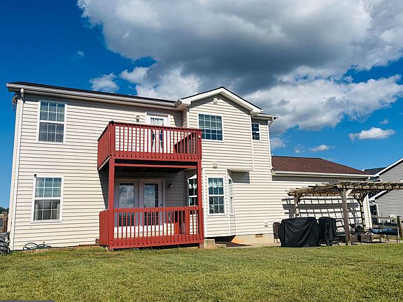 BACK TO ACTIVE BUYER WAS UNABLE TO OBTAIN FINANCING *Motivated Seller* Welcome to 7 Spyglass Drive, a spacious 3-bedroom, 2.5-bath home set on a rare half-acre lot at the end of a quiet cul-de-sac. Designed to stand out from typical subdivision living, this property offers both comfort and character inside and out. The fully fenced backyard provides plenty of room to play, garden, or entertain, with a two-level deck—accessible from the great room and the owner’s suite—overlooking the space and framing beautiful views of North Mountain. A stamped concrete patio with firepit and pergola completes a setting that is perfect for outdoor gatherings year-round. Inside, the kitchen combines timeless style with thoughtful details, featuring white cabinetry topped with granite, stainless steel appliances, under-cabinet lighting, and lower cabinets with built-in roll-out shelving. An adjacent laundry room is equipped with a modern Samsung washer and dryer set for added convenience. The main level flows easily into the bright living spaces, creating an inviting atmosphere for everyday living. Upstairs, the expansive owner’s suite feels like a true retreat, with its private deck, spa-inspired bath, soaking tub with mountain views, separate shower, private water closet, and oversized walk-in closet. Two additional bedrooms are larger than average, each with generous closet space, and share a well-finished hall bath. Practical touches include an insulated garage ready for year-round use, whether for storage, hobbies, or projects. The location balances neighborhood privacy with excellent commuter access. Just minutes from I-81, Route 9, and Route 45, travel throughout the region is convenient, whether heading toward Hagerstown, Winchester, or beyond. The Martinsburg MARC station offers an easy rail option into Washington, D.C., while both Dulles International Airport and Baltimore/Washington International Airport are within driving distance for business or leisure travel. With its end-of-cul-de-sac setting, quiet surroundings, and quick access to shopping, dining, schools, and major commuter routes, this home combines privacy, functionality, and lifestyle in one exceptional package.