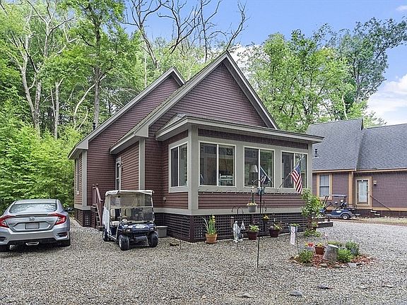 Welcome to Summer Village, Westford's seasonal cottage community on the shores of Long-Sought-For-Pond! This 2-bedroom cottage offers open-concept living room and kitchen with vaulted ceilings, easy-maintenance vinyl flooring, center island and recessed lighting, two bedrooms with cozy carpeting, a full bath with stackable washer & dryer, and a carpeted LOFT. Sliders open to the welcoming 3-season sunroom with woodland views. SPECIAL FEATURES: 3 NEW (2022) MINI-SPLITS FOR EFFICIENT HEATING & COOLING, CUSTOM MOTORIZED BLINDS (sunroom), NEW STORM DOORS, NEW INTERIOR PAINT (2022), EXTERIOR PAINTED IN 2020, NEW BACK STEPS, and AMPLE STORAGE IN LOFT, EAVES, PULL-DOWN ATTIC, AND ATTACHED SHED. 7 Starlight Lane is tucked away on a cul de sac, yet close to everything: private beach, heated pools, tennis, basketball, pavilion, restaurant & bar, general store, hiking, bocce, putting green, and more! GOLF CART INCLUDED WITH SALE.