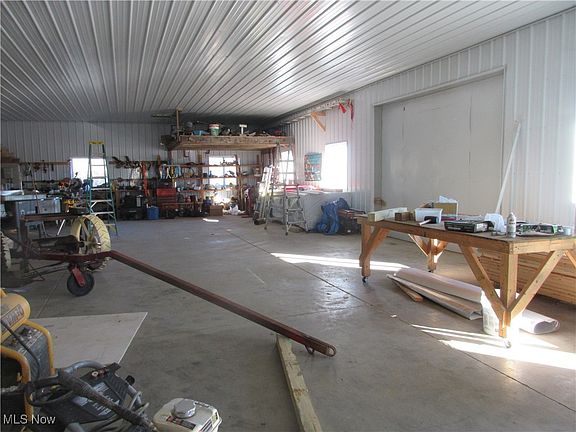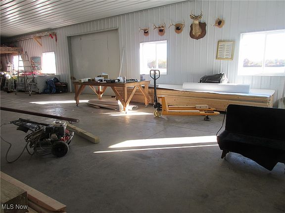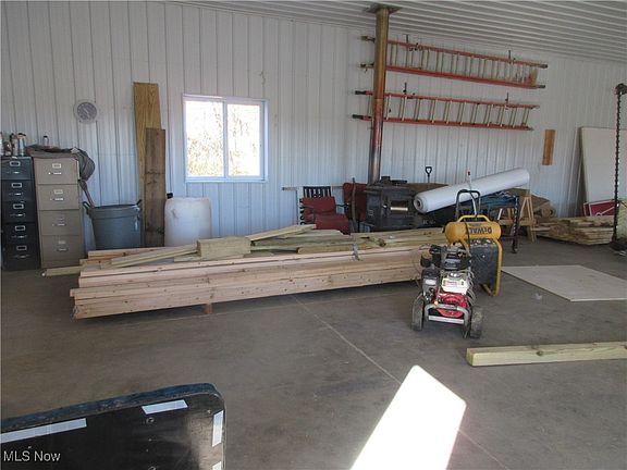 Workshop on 1.7 acres, has 2,048 sq. ft., 5" concrete floor, insulated walls and ceiling, and is heated by a coal stove.