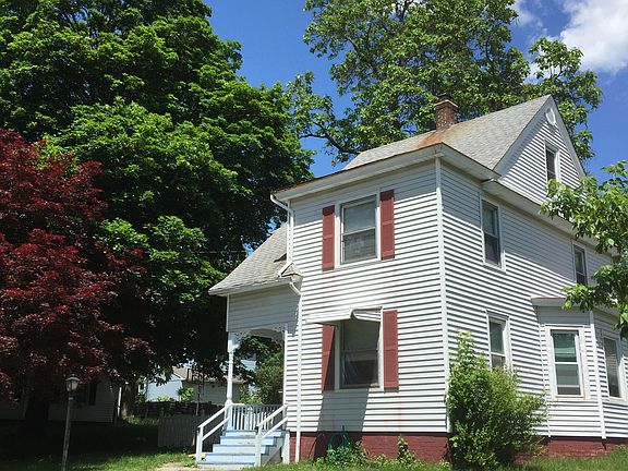 Side Stair Colonial, 2 bed, 1 bath, high ceilings, original hardwood floors, 3 season porch, detached garage, white picket fence front, privacy fence back, long driveway, 5 minute walk to downtown New Milford, quiet street, bonus finished attic and full footprint basement, W/D included and spare fridge included.
