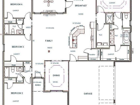 Under Construction-Almost Finished - Dogwood Creek B1 is an open floor plan with 4 bedrooms, 3 baths, dining room with 3 car garage. NO CARPET! Open kitchen has 10' ceiling, granite counter tops, large island with raised bar seating, custom cabinetry, rev-wood floor, tile backsplash & pantry. Family Room features 10' ceiling, recessed lights, rev-wood floor, extensive trim, & gas-log fireplace. Dining Room has 10' ceiling w/trey, shadow box under chair rail & rev-wood. Master Bedroom w/double trey ceiling, recessed lights, ceiling fan & rev-wood. Master bath includes large tile shower, granite vanities, glamor w/tile surround, linen closet, & walk-in closet. Covered, rear porch & patio.