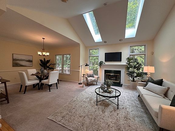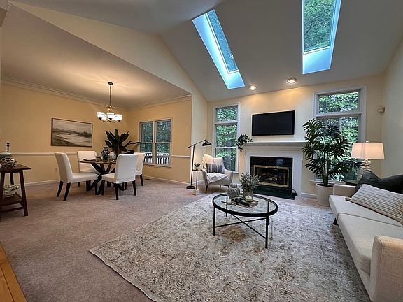 Exceptional single-level living in the serene community of Huckins Farm. This sun-filled home offers a vaulted living room with fireplace & skylights, a spacious eat-in kitchen with center island, & a formal dining room ideal for entertaining. Defined spaces include a 1st floor office & a charming sun porch off the kitchen. Two bedrooms on the main level, including a primary suite with dual closets & en-suite bath. The finished basement adds versatility with a full bath, bonus room & ample storage. Residents enjoy community amenities including horse paddocks, pool, tennis, fitness center & scenic trails. Tucked away for privacy yet convenient to local amenities, this unit is not to be missed. Take advantage of a great price improvement and schedule your appointment today.
