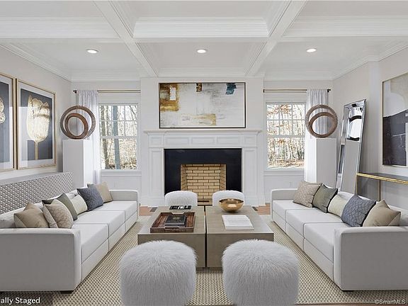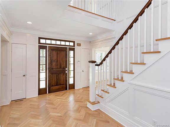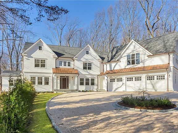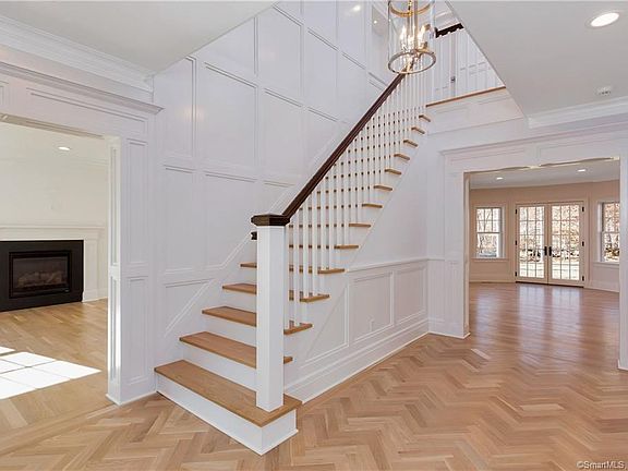 New build, completed in 2020 with timeless elegance located on one of the most sought-after streets in Darien. Centrally located within walking distance to town and train. This custom build sits up high upon over an acre of land. Flooded with light. Meticulous custom millwork abound! Paneled, double height entranceway with herringboned floor. Extra large home office with vaulted ceiling. Coffered ceilings, shiplapped mudroom with custom built in storage benches and cabinetry, tiered ceilings in living room and master. Massive 4'x 8' Carrera island comfortably seats 6 in true Chef's kitchen, Wainscotted master suite with Carrera fireplace and heated MBH floor includes vanity table and his/hers dressing rooms. Expansive 46ft. bluestone patio with outdoor fireplace; 9+ft ceilings, spectacular natural White Oak flooring throughout. 15+ ft ceiling in bonus room. Finished lower floor includes gym, windowed playroom, ½ bath. Crown molding throughout, French doors, 4 fireplaces, two stairwells lead from lower to main to upper floors, 3 car garage, security system, irrigation system, wired for sound, generator, 6 zoned high efficiency boiler w/steam humidification, subzero/wolf appliances, all Kohler accessories, designer lighting, all bedrooms prepped for flatscreens, professionally landscaped. Preapproved for pool. Optional Extra 1500 sq ft yours to finish in windowed walkup attic. Simply everything you always wanted in a Darien New Build. Come see fine craftmanship.
