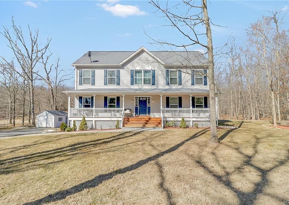 Privacy without isolation and a peaceful setting in the Pine Bush school district is just the beginning of what you will fall in love with! Colonial sits pretty on two acres and boasts nearly 2700 square feet of living space. New walkway and rocking chair front porch enhance curb appeal and lead inside to find hardwood floors throughout the main floor and a comfortable floor plan. Eat in kitchen is updated with granite countertop and new stainless refrigerator and stove. Family room with sliders leads to large, level yard privately situated and wooded on all sides. Master suite is complete with walk in closet and full bath with jacuzzi tub. Three additional bedrooms are all generous in size and laundry is conveniently located on second floor. Enjoy summer fun in above ground pool and prepare to party on two decks. Walk up attic and basement offer tons of storage or finish for even more living space. Pellet stove saves on heating costs and shed is an added bonus! Home warranty included!