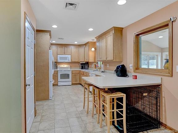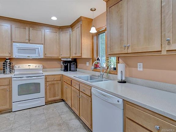 A great addition and to the market and even better location Totally rebuilt inside and out, this 3 bedroom, 2 1/2 Colonial is in the perfect location, on a cul-de-sac but walking distance to shopping, restaurants and more The open air foyer leads to a formal dining room with hardwood flooring to the left and a large living room to the right. Off of the living room is a gathering room with a fireplace, perfect for the cozy nights at home A pellet stove is great for supplementing your heat and adds to the ambiance The spacious kitchen has everything you need, plenty of counterspace and cabinetry, plus a breakfast bar Off of the kitchen is a 3 season sun room where you can enjoy your fully fenced in yard and pool Step out onto the concrete patio from the gathering room and entertain guests by the firepit. A half bath complete the main level. Upstairs is thoughtfully designed with a spacious master suite including a walk-in closet and large full bath with double sinks. 2 other bedrooms, a full bath and a laundry room complete this level. No basement? No problem. There is an attic and a shed for plenty of storage