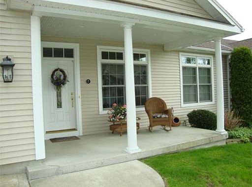 Strong Farm Estates! Desirable freestanding condominium in sought after complex where units are rarely offered for sale, mint condition throughout, wide open floor plan, custom kitchen with Corian counters & English tile backsplash open to fireplaced living room and formal dining room, master suite with oversized private bath and French doors to sunroom, soaring cathedral ceilings in the kitchen, living room and master bedroom, 1st floor laundry, second bedroom has trey ceiling, crown moldings, open front porch and private rear patio, security system, full walk out basement is ready to be finished with full windows and the perimeter has already been studded and insulated, enjoy the carefree conveniences of condo living with all the amenities of home! Must be seen, will not last!!!