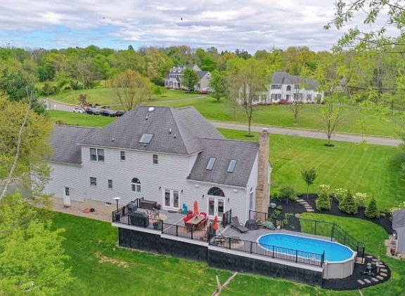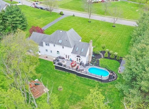 SENSATIONAL Meadow Run South Colonial in Immaculate condition! This Spacious and Sunny home will delight you with it's great floor plan and smart updates. Two Story Foyer with arched window paves the way into the Formal Living Room and Formal Dining Room with bay window. Striking Family Room with floor-to-ceiling Stone-faced Fireplace, custom designed with lighted niches. Inviting Country Kitchen with white cabinetry (new hardware), granite countertops, ss appliances, bamboo hardwood flooring. Powder Room and Laundry complete the first level. ALL NEW lighting fixtures inside and out! The Master Bedroom Suite is stunning with a custom crafted walk-in closet, completely remodeled Bath with oversized glass-enclosed shower, new fixtures and skylight. Three additional bedrooms (all with ceiling fans) and a remodeled main bath complete the second level. As an added bonus, the basement is expertly finished with a sitting room, den, game room including a chic wet bar, wine fridge and completely unique epoxy floor. AWESOME! Located in a desirable cul-de-sac setting, this two acre plus property offers a rear Trex Deck with lighting and wired for speakers, built-in pool, professional landscaping and outdoor up lighting.