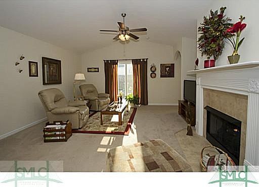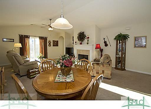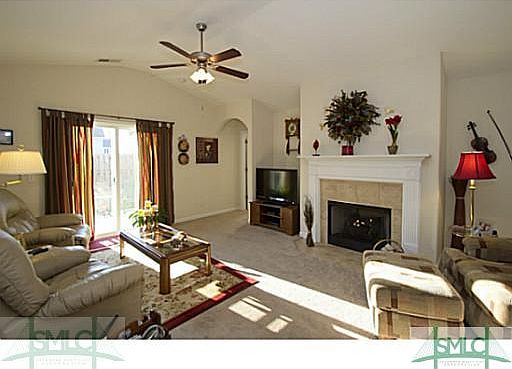 Immaculate 3 BR 2 BA home w/split, open floor plan. Vaulted ceilings in kitchen, dining, den & master bedroom. Kitchen with breakfast bar & 36" upper cabinets & pantry. Gas fireplace with logs & remote included. Spacious master with walk-in closet & garden tub. Privacy fenced back yard with patio.
