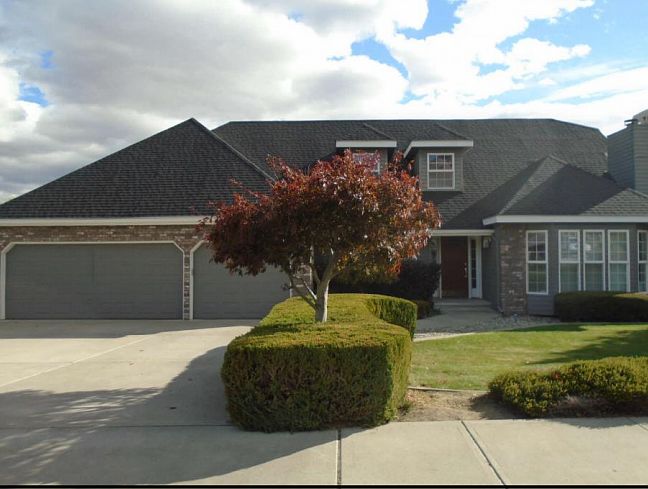 Great 4 Bdr Home w/ Master on the Main Floor. Kitchen has tile countertops & wood floors. Formal Dining Room boasts a beautiful coffered ceiling. Vaulted ceilings in Family & Living Room with gas fpls in each room. Large Master Suite w/ French Doors, walk-in closet, dbl. vanity, soaking tub and shower. 2nd bdr on main level w/ own full bathroom.2 add. bdrs quietly located upstairs with own bath.3 car garage, Large Deck and fully fenced back yard with extra deep secured parking for RV or Toys!!