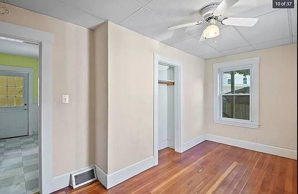 This unit has a cozy kitchen, 1 bedroom, a full bath, and a large sunlit living room with a stunning bow window. Space for 1 car and plenty of off-street parking. The tenant is responsible for electricity.