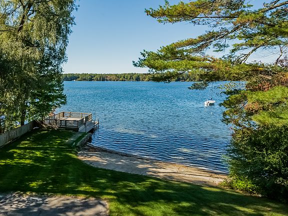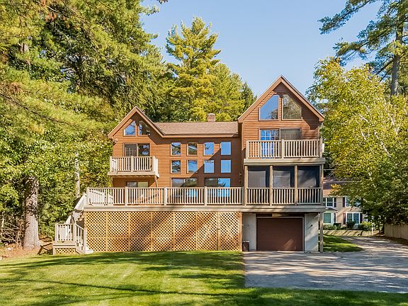 This West facing Winnipesaukee home has a sandy beach that makes it the ultimate beach house! Exterior features include a permanent dock with an island-like patio, level lot, and a lush lawn that grows all the way to the edge of the sand beach. The main level of this lake house has a living room with a vaulted ceiling and natural woodwork. Kitchen and dining area open to the enclosed, screen porch and 28' x 16' deck. Upstairs, the master suite and family rooms have their own decks. Each upper level room and deck have distinctive lake and mountain views. Bunk room in lower level has its own bath. With a location within a 10 minute drive to Center Harbor amenities, gyms, shops and restaurants this is the perfect spot for summer fun. The site of the home and the interior design make it perfect for entertaining or enjoying the beauty of the lake.