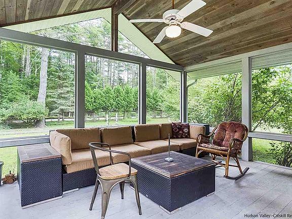 A perfect Woodstock country getaway with 3 bedrooms and 2 baths plus a separate seasonal studio/guest house. This vintage charmer has so much to offer - a stone fireplace in the living room to cozy up to, multiple outdoor spaces for gardening, bocce, sitting around the firepit, or enjoying meals al fresco on one of the bluestone patios or in the wonderful large screened in porch, and all this located on a quiet no outlet lane only 5 minutes to town. Fenced in level yard to keep your pets safe and deer out of the garden enhances the outdoor use. In addition to the three bedrooms and two full baths, the adorable studio building has a bathroom and could be used for extra guest overflow in the summer or separate office or artist's space. With some winterization this could be made suitable for year round use. A lovely property in a great location.