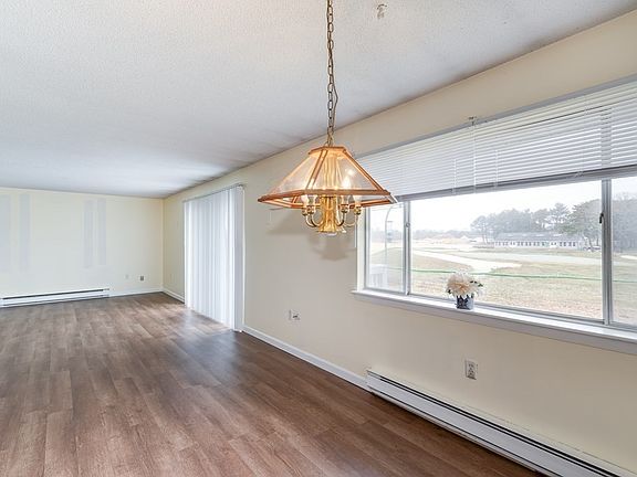Second floor, brights and spacious two-bedroom condo in Onset Village, with views of Bay Ponte Golf Course.Upon entering you will notice the new vinyl floors thought out living and dining rooms. Kitchen is open to the dining room with sliders leading to your own private deck, overlooking the putting green . The two bedrooms have very private views of greenery, surrounding the complex. Plenty of storage with many closets and a sizable entryway leading to the primary bedroom. There is in unit washer/dryer and one car garage .The association fees are only $200 a month! Take a short stroll to Onset Bay beaches or to the village for all the summer activities, shops and restaurants.