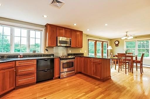Wonderful 12 year young Colonial on beautiful landscaped private lot, yet located minutes to Plymouth downtown, Library, Public Beach and Rte 3. Open floor plan featuring gorgeous custom kitchen, breakfast area and fireplaced living room. Formal dining room with wainscotting. Master bedroom with walk in closet and Master Bath. Walk up third floor attic for additional space or storage.Central Air. Two car garage under and walk out basement. Corner lot in cul de sac location.