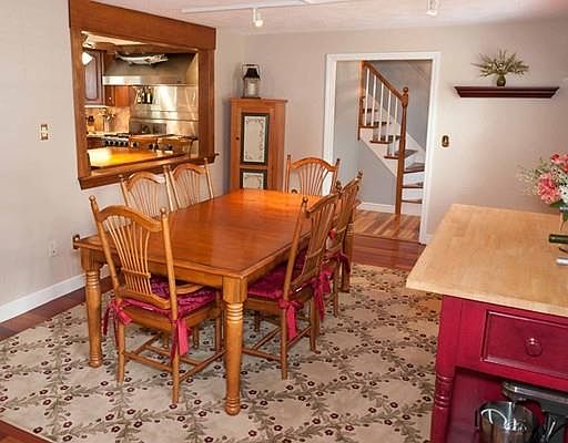 Sought after Lakeside neighborhood with fabulous views of the Lake Quannapowitt Garrison Colonial, 10 Rooms, 4 Bedrooms, 2 ½ Baths. Lovely Living room, Bay Window with water views, Dining room with Fireplace, & Brazilian cherry HW floor, Updated kitchen, stainless appliances, commercial stove with double oven. 1st floor family room, office area or porch leading to deck to watch the sunsets over the lake. 2nd floor 4 spacious bedrooms, with double closets, master bedroom with bath, cedar closet and 2 additional closets in hall, 2nd fl laundry room. Additional finished Playroom with fireplace in basement and another small office walk out to the Fenced Back yard with brick patio and hot tub to remain. Updated 6 zone heat, Central AC, Central Vac., Sprinkler System, Roof newer, & 1 car garage.