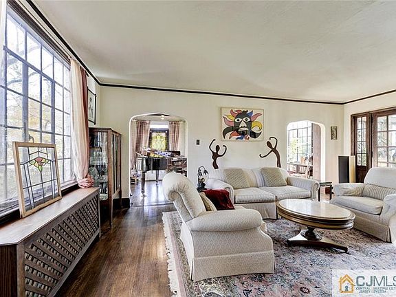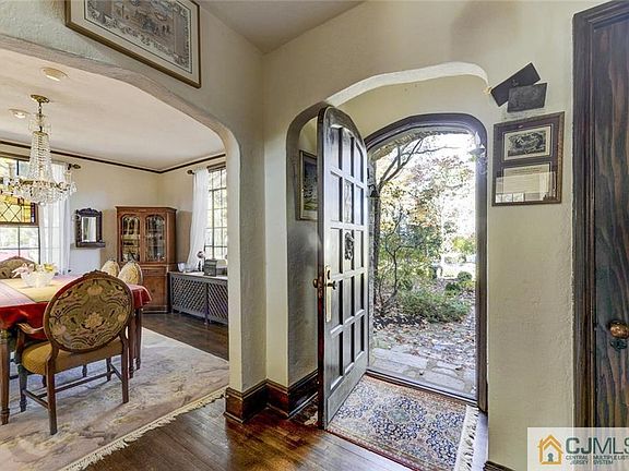 This one-of-a-kind Tudor home, a noble presence on a corner lot in historic Cranbury, bears all the striking exterior hallmarks: decorative half-timbering, dramatic slate roofline, and leaded windows. Inside, period millwork, stained glass, built-ins, and hardwoods complement modern features created by a major renovation, like a gourmet kitchen with all the chef needs: fine appliances, marble worktop, stainless island, and more. The Garden Room is warm with skylights, a gas fireplace, and radiant heat floor. French doors lead to a fireside living room and music/game rooms with bookcases. 4 bedrooms and 2 baths on the 2nd floor include one accessing a deck. The master floor has lots of flexibility, encompassing a vaulted bedroom, lovely bath, and 2 rooms that can be anything you wish: offices, dressing room, den. Storybrook grounds frame a gazebo, charming potting shed, and dappled lawns with an irrigation system and outdoor LED lighting. 9 miles to Princeton, 6 to the Princeton Junction Train, and blocks to charming downtown Cranbury.