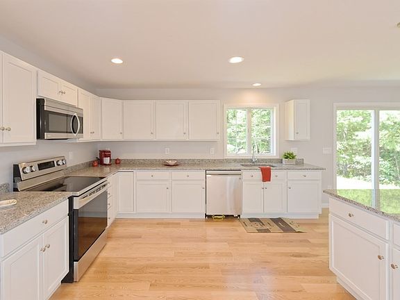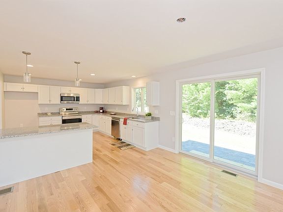 Spectacular split-entry Cape offers vaulted ceilings, hardwood floors and a bright, sunny open floor plan! The fireplaced living room is enormous and opens to the granite kitchen complete with an island for hanging out or prepping dinner. Dining area with double closet and slider to a patio in the back expands the entertainment sized kitchen. Heading down the hall, is a half bath and a laundry room. From here, you enter into the private primary suite area complete with a full bath (double sinks, oversized walk in shower and toilet area), a walk in closet and a spacious master bedroom with vaulted ceilings. On the top level of this home, the choice is yours ~ 3 more bedrooms OR 2 bedrooms and an office/playroom. Second full bathroom on this level as well. The basement is unfinished but has great potential for future finished space and there is a two car garage under. Up and ready to go - this new construction sits on a dead end street in a great neighborhood setting.