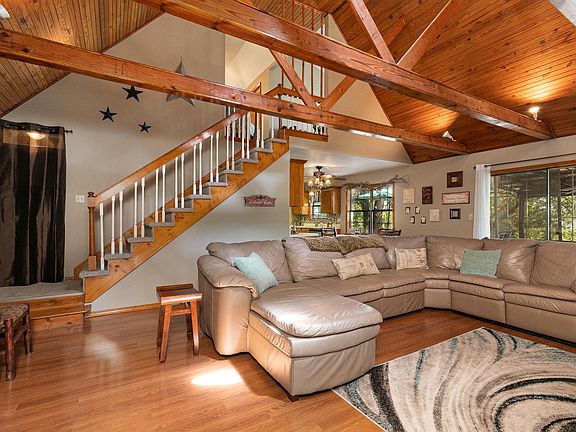 Need a peaceful home away from home? You've found it! Only 15min away from Branson and 6min to Hwy 65, this charming cabin comes fully furnished for your weekend retreats! The living room features impressive vaulted ceilings with gorgeous solid wood beams. Appliances are only 4 years old. The home also features a large wrapping deck with a partial view of the lake (partial in summer, more lake view in winter), a gas grill, and space for entertaining guests or for a quiet morning cup of coffee. Recent updates include a newly paved driveway, new hot water heater, new toilets in both bathrooms, new kitchen sink, and new patio furniture that stays. A new front door will go on prior to closing as well! Not eligible for nightly rentals.