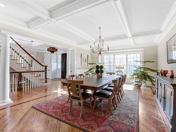 Magnificent center hall colonial, nestled on 6 private acres with expansive lawn and mature trees. Impressive finishes and craftsmanship throughout the home, including 4 fireplaces, hardwood floors and extensive molding throughout. Gourmet eat-in kitchen with center island, expands into a sun filled family room and blue stone covered porch, with free standing brick fireplace and bar for entertaining and gatherings. Ascend the grand staircase to the second floor where you'll find a large master with luxurious bath and wardrobe room, 4 additional bedrooms and a media room. Workout in the home gym with mirrored walls and mat floor or practice your skills on the sport court. The carriage house has a loft for storage and two bays for vehicles. This house has it all!