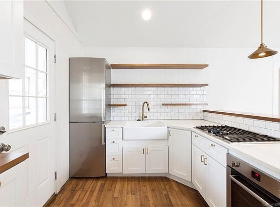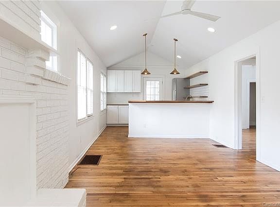 Charming renovated 1920s bungalow located in the heart of West Asheville. Walkable and bikeable to West Asheville's shopping and dining. Renovations include refinished hardwood floors, remodeled kitchen, remodeled bathroom, updated electrical, updated plumbing, R-38 insulation in the ceiling and fresh paint. Renovated kitchen has quartz countertops, stainless steel appliances, modern brushed brass fixtures, floating shelves and a gas oven/range. Bright living room with vaulted ceiling and brick fireplace (not functioning). Open floor plan connects kitchen with living/dining room. Two bedrooms have large windows for great natural light. Enclosed back deck leads to fully fenced back yard. Excellent outdoor living with a southern style covered front porch and a flat back yard that is perfect for relaxing and entertaining. See brochure for details.