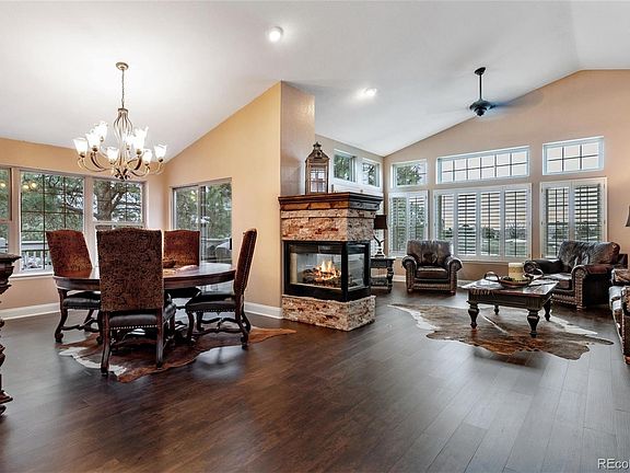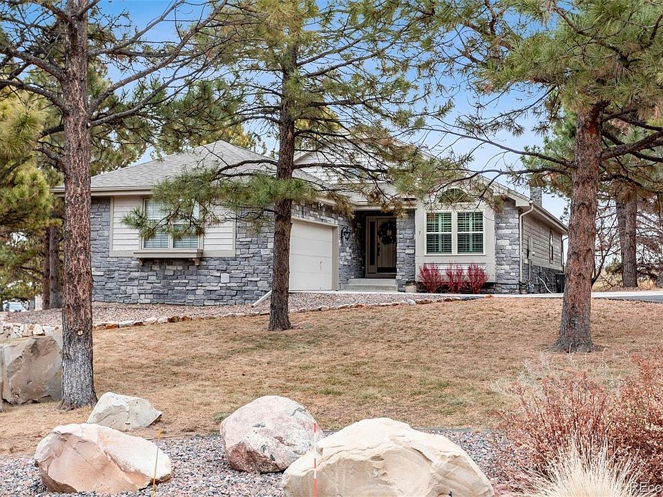 7 Tauber Drive is a caliber of home and community that is hard, even rare, to find at this MOVE IN READY price point; particularly on the second largest lot in the highly desired, gated community, The Hamlet. Sitting on the 4th hole, this corner lot property is set back off the street. Side entrance garage gives the home incredible curb appeal with a comfortable deck for those spectacular Colorado evenings. Trees surround the lot giving a great sense of privacy and wildlife is seen on almost daily basis. Talk about a low maintenance home!! HOA provides snow removal, lawn mowing, two times a year full yard clean up, and more. Play golf on the weekends instead of slaving away in the yard. The oversized garage is great for the truck owner who wants to park IN THE GARAGE. Freshly painted interior. Updated spectacular kitchen remodeling and appliances. New water heater. New air conditioner. New flooring in main areas. Check out the stunning 5" newly installed trim. How about the newly updated stairs with gorgeous handrail and baillisters! Shutters. Closets are enormous with more than ample storage space. A separate main level office, main level laundry, main level guest room, and main level primary bedroom makes this home PERFECT for easy living. If you want the extra space for a game room, additional guests, or potential for more bedrooms, YOU WILL LOVE the lower garden level. The storage will blow you away. All lower level windows on East side are new and allows the light stream in, making it feel like an additional main level. Trails are easy to access with schools, hospital, shopping, DTC, and Daniels ParkPark close by. 7 Tauber Drive. It's your new home in The Hamlet, Castle Pines, Colorado.