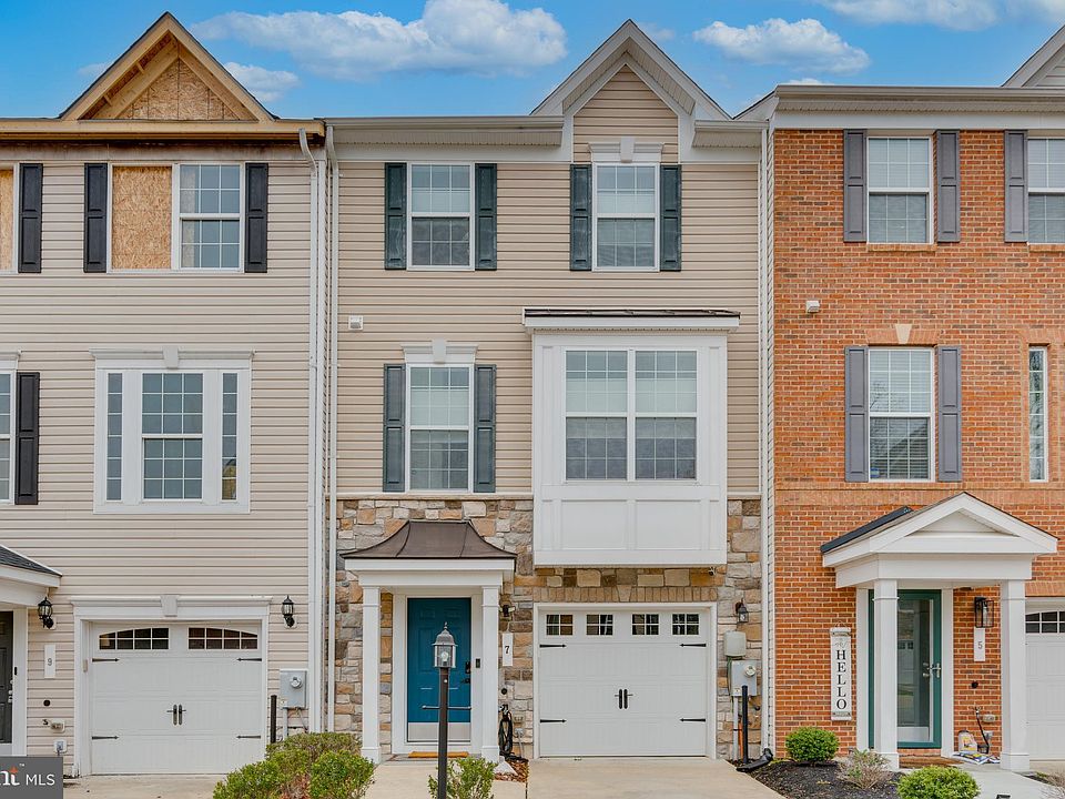 This spacious interior unit townhome with stone and siding front, rear deck, one car garage and driveway. is located in the lovely community of Villages at Peppermill Entry into this roomy three-bedroom, two full and two-half bath home is through the bottom-level foyer with new LVP flooring, overhead lighting, access to the garage, coat closet and laundry closet with new LVP flooring, fresh paint, overhead light and front-loading washer and dryer. The entry level includes a newly carpeted family room with fresh paint, overhead lighting and powder room with hardwood floors, fresh paint and pedestal sink. Off the family room is a den with new carpet, overhead lighting and sliders to the rear yard. The main floor features a living room with new LVP floors, fresh paint, ceiling fan with light and crown molding, along with a sunroom with ceramic tile flooring, fresh paint, ceiling fan with light and sliders to deck, kitchen with new LVP flooring, pass-through to living room, recessed lighting, breakfast bar and stainless-steel appliances and a powder room with wood floors, fresh paint and pedestal sink. The dining room boasts new LVP flooring, fresh paint, brushed nickel chandelier, a box bay window, chair rail and crown molding. The upper-level, with fresh paint and new overhead lighting, features a full hall bath with LVP floors, tub with shower and ceramic surround and a medicine cabinet. The primary bedroom includes new carpet, fresh paint, cathedral ceiling, ceiling fan with a light, walk-in closet with overhead light and a primary bath with soaking tub, double sink vanity, separate shower with ceramic surround and medicine cabinet. The second and third bedrooms, also on the upper level, feature LVP floors, fresh paint and ceiling fans with lights. Attic entrance is through the double-door closet in bedroom two. This beautiful townhome is conveniently located to major thoroughfares, shopping, dining and recreation. A definite MUST SEE!