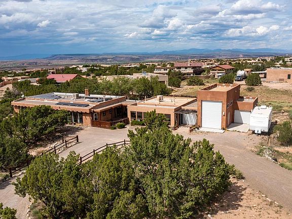 Authentic Pueblo-style adobe on 1 acre in Placitas with breathtaking Sandia Mountain views. This versatile property includes a main home plus a casita ADU connected by a breezeway. Recent updates include fresh interior paint in select rooms and new kitchen flooring. The spacious kitchen features granite counters, updated appliances, and abundant cabinetry. Enjoy natural light from large windows, wood vigas, brick floors, and a traditional kiva fireplace. Solar panels (to be paid off at closing) provide energy efficiency. Three garages, including an RV-height bay, offer plenty of storage. Conveniently located near Highway 165 for easy access to I-25, ABQ, and Santa Fe. See More...