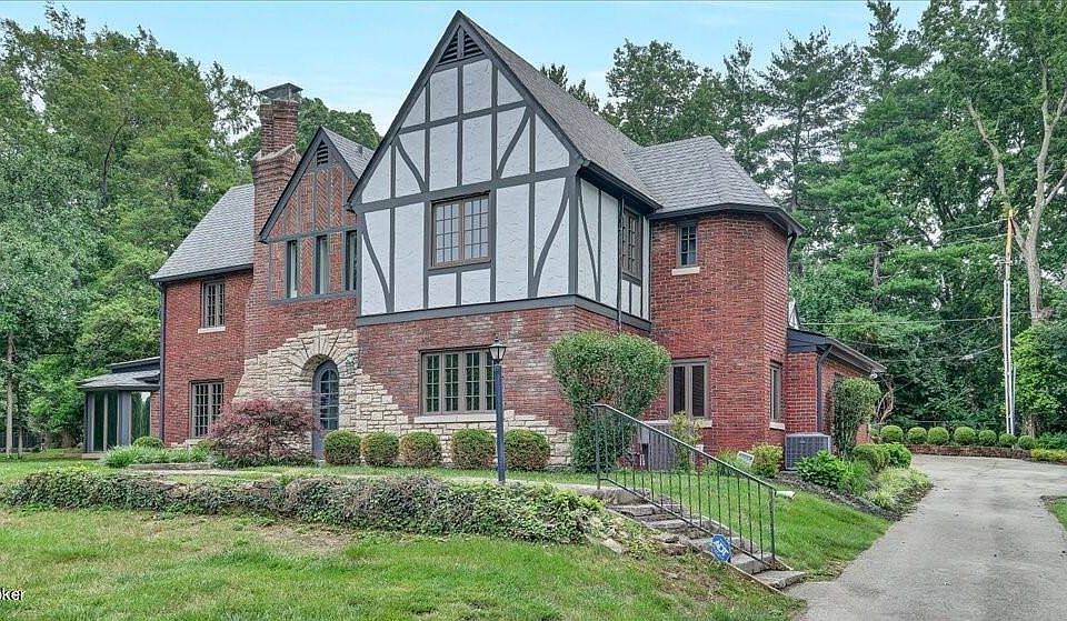 Welcome to this exquisite Tudor-style home nestled on a spacious 1.2 acre lot in coveted Indian Hills. With its captivating architectural design and expansive surroundings, this residence offers a truly remarkable living experience. Upon arrival, you'll be greeted by a charming facade adorned with classic Tudor elements, such as steeply pitched roofs, decorative half-timbering, and masonry details. The lush greenery and mature trees surrounding the property create a sense of privacy and tranquility. Step inside and be captivated by the timeless elegance and generous living spaces this home has to offer. The main level features a foyer, leading you to an inviting living room where a beautiful, wood-burning fireplace awaits. Large windows bathe the room in natural light, providing a warm and welcoming atmosphere. Adjacent to the living room, you'll find a formal dining room that is perfect for hosting memorable gatherings and special occasions. The well-appointed kitchen is a chef's dream, boasting butler's pantry, ample counter space, and custom cabinetry. An adjoining breakfast nook provides a casual dining area for everyday meals, while overlooking the picturesque landscaping. A tiled sunroom, adjacent to the living room, has a wood-burning stove & will be a favorite place to read or paint. The family room boasts a gas log fireplace & abundant natural light. There are also built-in bookshelves in this lovely wood paneled room. This home boasts five spacious bedrooms, each offering comfort and privacy. There are 2 primary suites, each its own private retreat. The 2nd floor primary features a luxurious en-suite bathroom & 3 closets. Privately located off the family room, the 1st level primary suite has a fully handicapped accessible tile bath, including a walk in tub and shower area. The additional bedrooms are versatile, accommodating guests, family members, or transforming into home offices or hobby rooms to suit your needs. There is a private suite with private entrance over the garage that has a full bath & sitting room; perfect for au-pair or college student. The outdoor space is a true oasis, providing plenty of room for relaxation and entertainment. Enjoy the beauty of nature from the expansive patio, ideal for al fresco dining or hosting outdoor gatherings. The lush lawn is perfect for outdoor activities, while the surrounding trees provide shade and privacy. Plenty of room to add a pool or pickle ball court. The unfinished basement has the perfect space to build out a wine room or sauna, as well as abundant storage area. Additional amenities of this home include an enclosed, tiled, glass breezeway; 1st floor laundry room; abundant storage throughout; and an Automatic Generator. The attached 2-car garage offers convenient parking & storage.This home combines timeless elegance, ample living space, and serene outdoor surroundings. It presents a rare opportunity to enjoy a sophisticated and luxurious lifestyle in a highly desirable location.