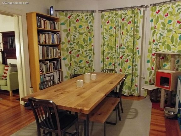 ID: 93615177 Beautifully maintained apartment on a quiet residential street. Large hallway closet across from a spacious front room that services as either a living room or additional bedroom. Separate dining room connects to the main bedroom and a modern, fully-applianced kitchen with breakfast nook. Direct access to a shared fenced-in back yard. High ceilings and hardwood flooring throughout. Cat-friendly, with dedicated laundry and storage space in basement. Conveniently located just a few blocks from Porter Square, with easy access to Harvard Square, Central, and the Red line.