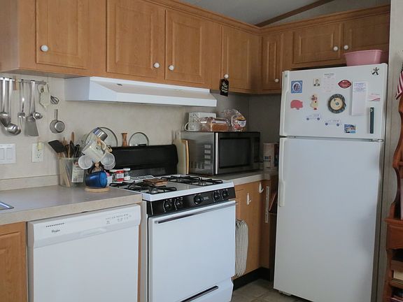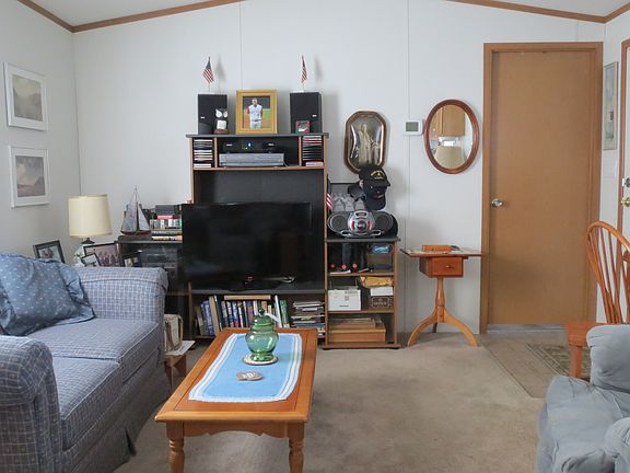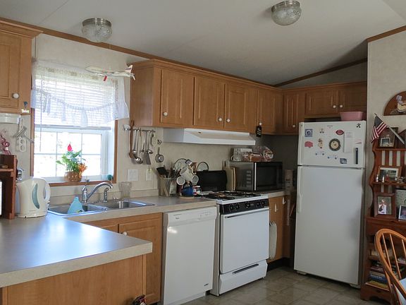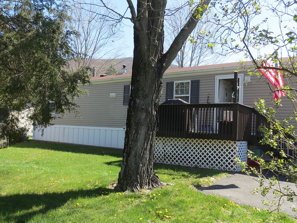 Affordable living in a 55+ mobile home park. Low monthly fees include water, sewer, garbage and taxes. Two bedrooms, one full bath. Eat in kitchen with maple cabinets, dishwasher and gas stove. Washer/dryer. Great location; end unit with nothing but grass and mountain views in the front. Good size deck with room for grill and outdoor seating. Storage shed included. Approximately 8 years old and well maintained; move right in.