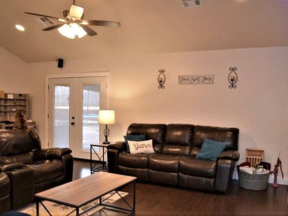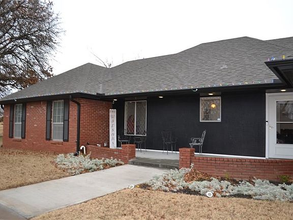 So many updates in this Northridge Addition modern farmhouse! Updated flooring, texture, paint, barn doors, lighting, HVAC, plumbing, appliances, bathrooms and more! Cathedral ceiling in the living room, new built-in storage, and cozy electric fireplace for conversation, reading and relaxing. Cooking is a breeze with double ovens, 36" gas cooktop, vent hood and adjoining dining area with built-in hutch for your microwave or even a coffee bar. Additional large dining area in the living room is perfect for entertaining! Work from home in your private study. Seller is wiling to convert the optional extra room, being used as a 4th bedroom, back to a garage if needed. Corner lot with circle drive and carport has additional parking for family and friends. Great location to call Home!